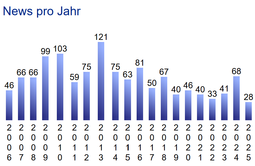 Es wurden 28 News und 63 Berichte geschrieben. Weiterhin gab es 50 Termine und es wurden 105 Bilder hochgeladen.