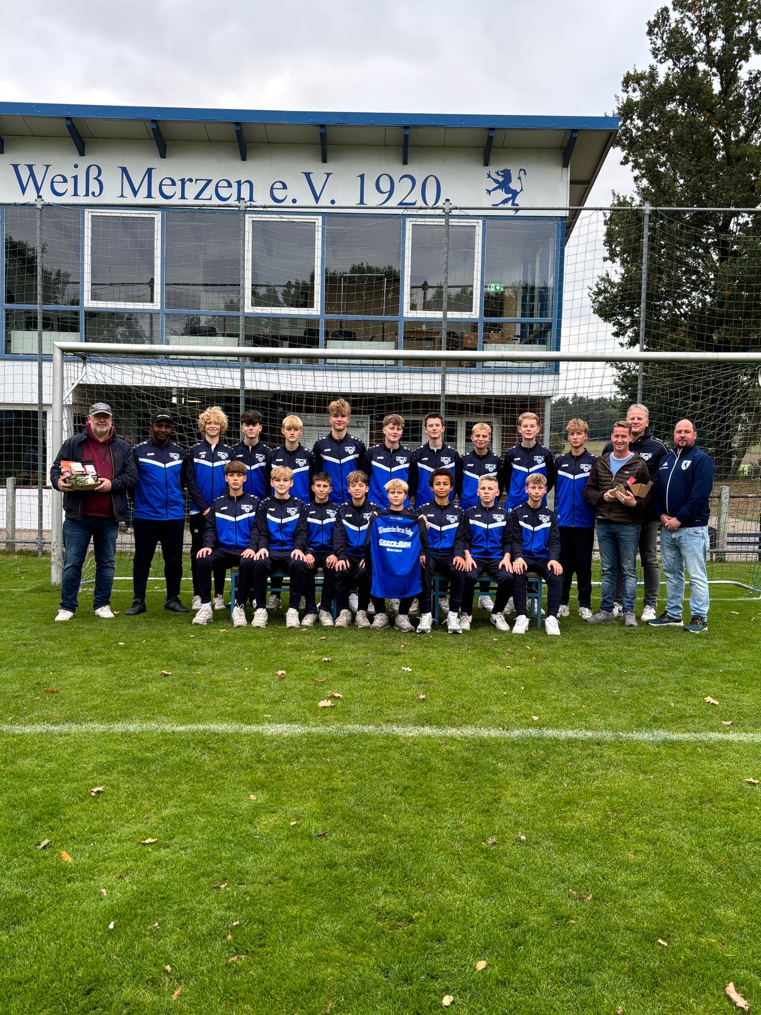 Unsere C1 der JSG Merzen/Neuenkirchen/Voltlage ist mit neuen Trainingsanzügen ausgestattet worden. Die großzügige Spende von Martin Geers (Geers Bau GmbH) und Heiner Schwertmann ermöglicht es der Mannschaft bei Spielen einheitlich aufzutreten und somit die JSG zu vertreten.