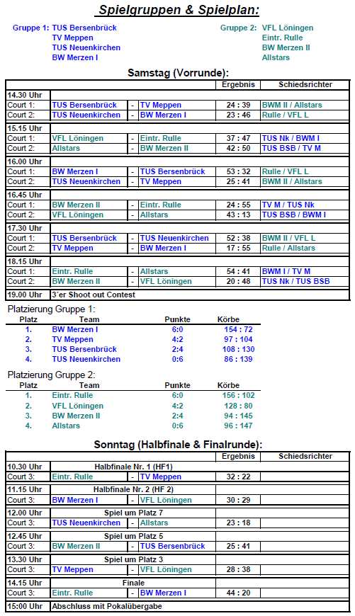 In der Gruppe 1 setzten sich die Lokalmatadoren und Gastgeber der Löwen mit drei Siegen durch. Ebenfalls ins Halbfinale folgte ihnen der TV Meppen.