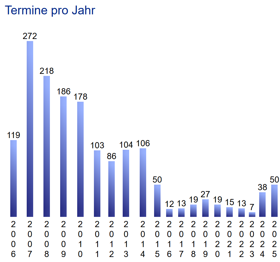 Es wurden 28 News und 63 Berichte geschrieben. Weiterhin gab es 50 Termine und es wurden 105 Bilder hochgeladen.