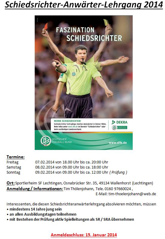 Interessenten, die diesen Schiedsrichteranwärterlehrgang absolvieren möchten, müssen